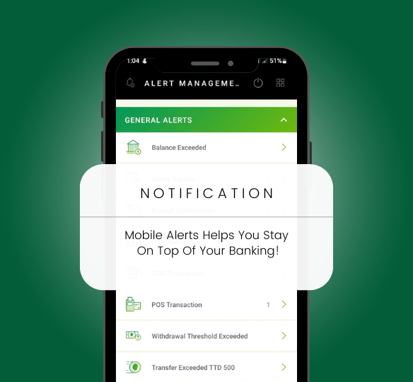 - Debit and Credit Card alerts (receive fast and secure real time notifications)