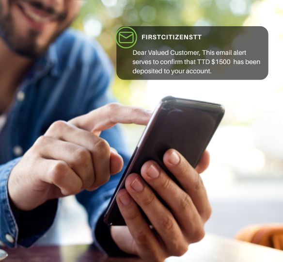 You will receive your Mobile Alerts via SMS and/or email to the mobile number and/or email address used when you opened your account. Update your information via the First Citizens Mobile & SMS Banking Preference Centre in Online Banking, if you would like to use a different address.