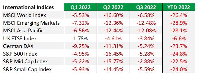 Nine months into the year and inflation has remained stubbornly high. Inflationary pressures are supported by high energy costs, fueled by the Russia-Ukraine war, supply constraints caused by the lockdowns implemented by China following a resurgence of the COVID-19 virus and cost pressures from tight labour markets as economies fully re-opened. In an attempt to cool such pressures, many central banks including the US Federal Reserve, European Central Bank and the Bank of England, aggressively increased their benchmark interest rate in the third quarter of 2022 with the objective of dampening consumer demand.