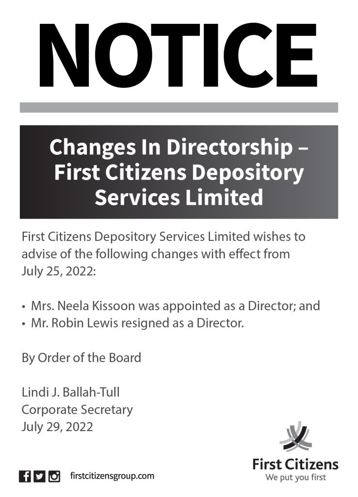 Changes in Directorship – First Citizens Depository Services Limited