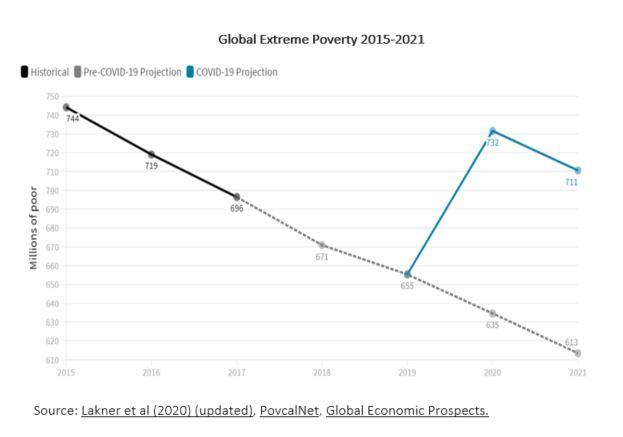 According to the World Bank, global extreme poverty rose for the first time in twenty years in 2020. It is estimated that the Covid-19 pandemic resulted in an additional 88 million to 115 million people being pushed into extreme poverty globally. The pandemic has propelled the world into an economic crisis, drastically affecting millions of lives globally. Countries implemented safety measures to guard lives which led to border closures and grounded flights. Business closure and job layoffs skyrocketed, creating immense pressure for those particularly within the low-income category.