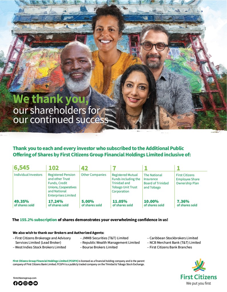 First Citizens Group Financial Holdings Limited APO oversubscribed by 55.2%