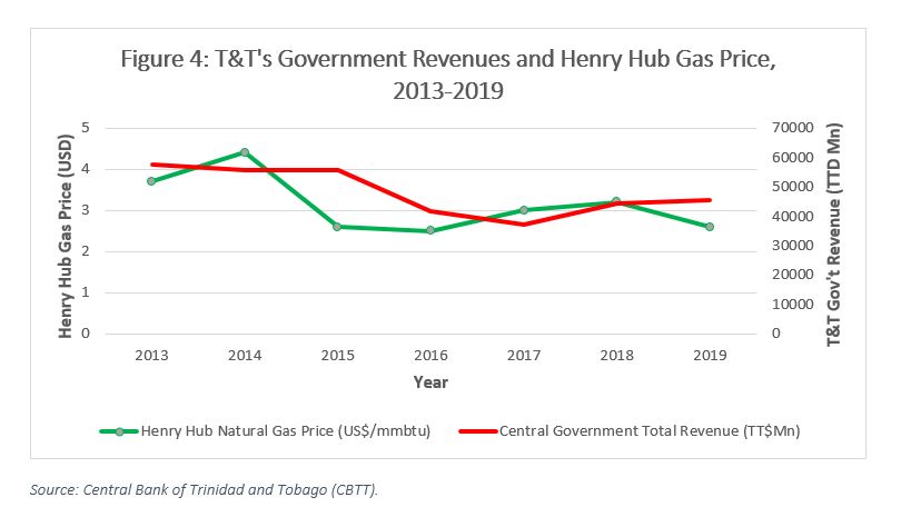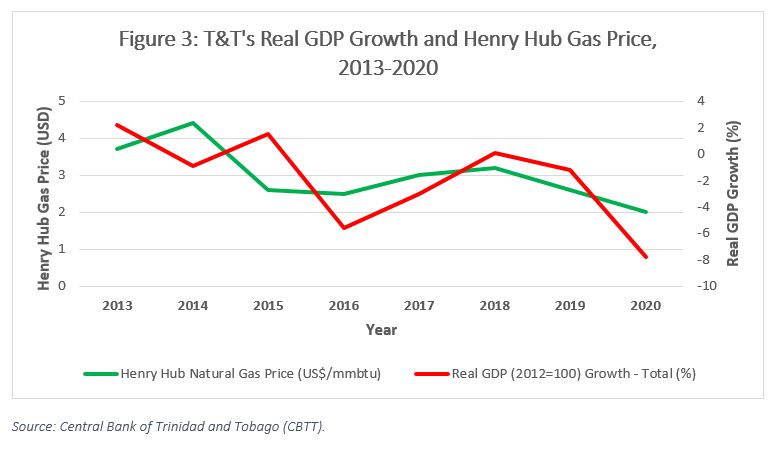 Within the past 20 to 30 years, Trinidad and Tobago has transitioned from a primarily oil-based economy to one that is gas-based. Accordingly, the relationship between the gas price and the country’s key economic indicators has become strong and remained so within the past decade (see Figures 3 and 4).