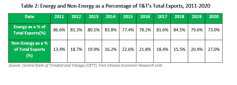 Table 2: Energy and Non-Energy as a Percentage of T&T’s Total Exports, 2011-2020