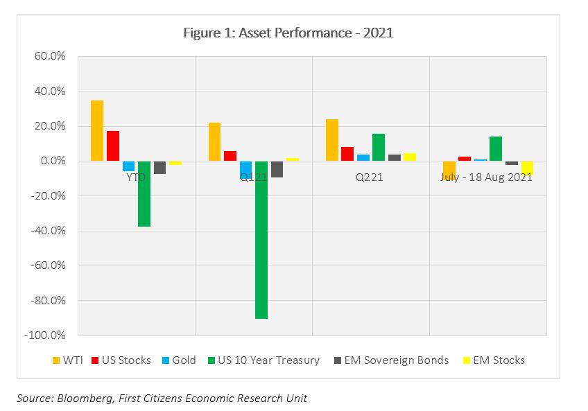 Investors are becoming increasingly cautious about the potential impact that the recent resurgence in COVID-19 cases will have on the global economic recovery. The highly contagious Delta variant continues to devastate many countries, threatening to undermine the gains some were able to eke out during the first half of 2021. This strain of the virus is the most predominant in the world and has been detected in more than 130 countries globally. The Center for Disease Control and Prevention (CDC) estimates that it was the cause of more than 80% of new US Covid-19 cases by the end of July 2021. The rise in the number of cases globally has prompted a reinstatement of restrictions on activity and movement, stoking concerns about the possible impact on global economic growth which has been weighing on investor confidence.