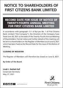 Notice to Shareholders of First Citizens Bank Limited