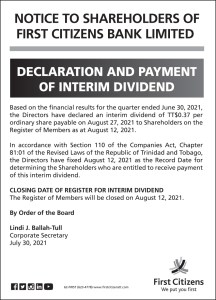 Notice to Shareholders of First Citizens Bank Limited