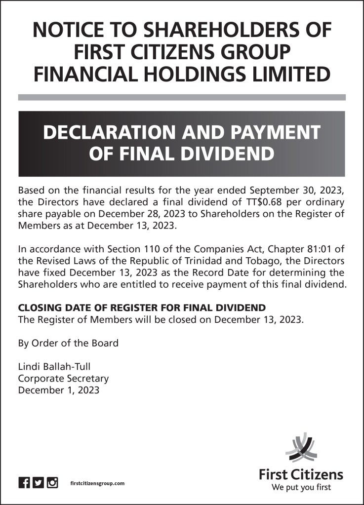 Notice to Shareholders of First Citizens Group Financial Holdings Limited