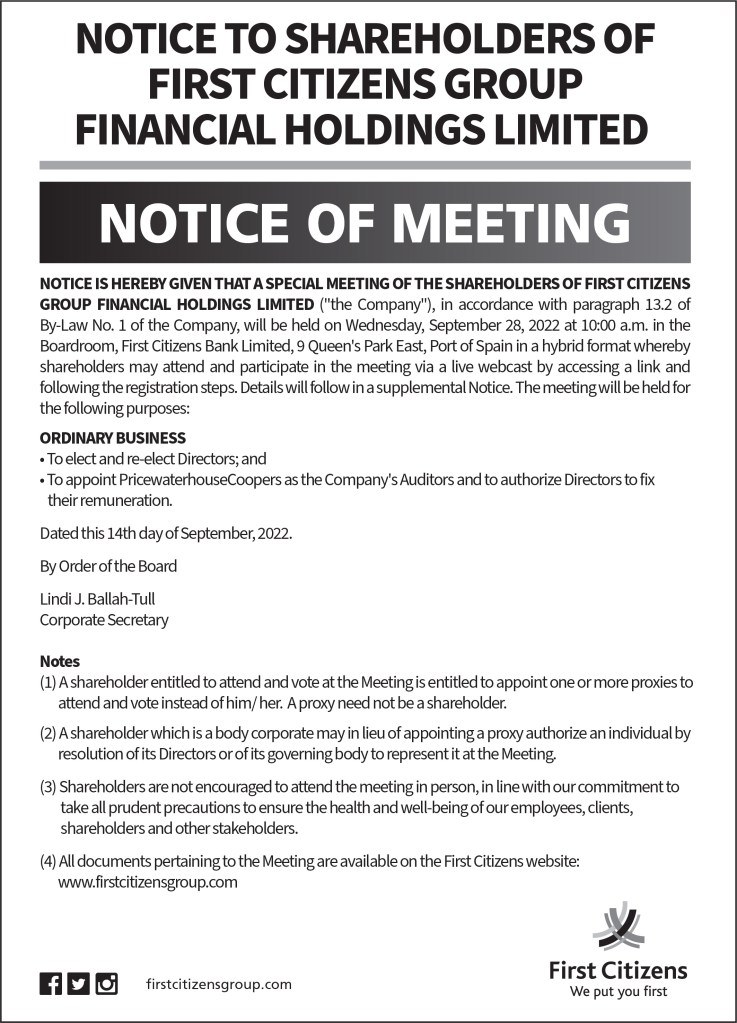 Notice to Shareholders of First Citizens Group Financial Holdings Limited