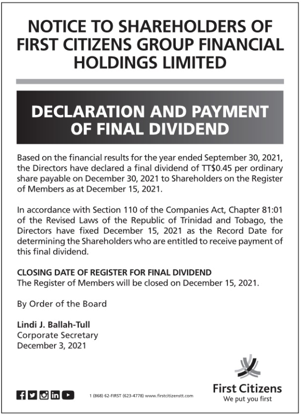 Notice to Shareholders of First Citizens Group Financial Holdings Limited