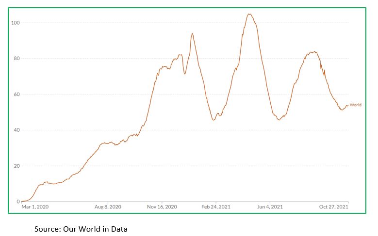 The momentum witnessed in the first half of the year, waned in the third quarter of 2021 as near-term outlooks dimmed due to rising coronavirus cases globally owing to the highly contagious COVID-19 delta variant and growing inflationary pressures. According to the World Health Organization (WHO), the delta variant is the most transmissible variant of the coronavirus and has been the cause for a renewed surge in infections worldwide as it peaked in early September 2021. Initially detected in India in October 2020, the variant has been found in more than 130 countries and is now the dominant strain in many countries.