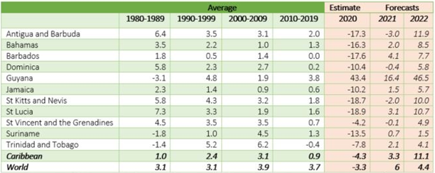Table 1: Caribbean Historical GDP Growth and Outlook