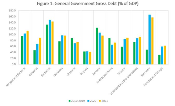 The Caribbean region has long been trapped in a vicious cycle of low economic growth and onerous debt, exacerbated by its inherently small, narrow and highly open economies, which increase the region’s vulnerability to exogenous shocks. The pandemic has worsened the situation in many regards, and for countries which were able to begin the process of policy and structural reforms, have been greatly set back in meeting economic targets. As a result of the pandemic, tourism-dependent countries in the Caribbean contracted by an average of 9.8% in 2020, while the decline amongst commodity-exporters was less severe at 0.2%. Simultaneously, record countercyclical expansionary fiscal policy was deployed in an effort to shore up economic activity, to protect the socially vulnerable and to avoid a full-blown public health crisis. With many countries already reeling from several other adverse shocks (most notably weather-related), the ongoing economic fallout from COVID-19 is likely to extend into the medium term given the existing economic vulnerabilities.