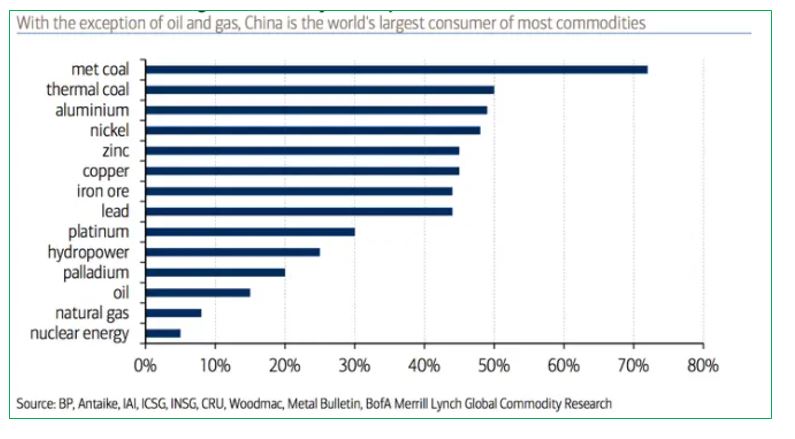 China’s share of global commodity consumption