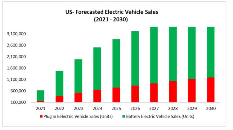 Electric vehicle penetration in the United States is steadily rising as major US auto manufacturers such as General Motors and Ford have undertaken significant investment to revamp their production to more environmentally friendly electric vehicles. Adding to this momentum is the US government’s support for the electrification process. Several states within the US have implemented financial incentives, including tax credits, rebates and registration fee reductions designed to promote EV adoption. Additionally, major infrastructural changes are being put in place in order to facilitate the transition to a fully electric vehicle+ population.