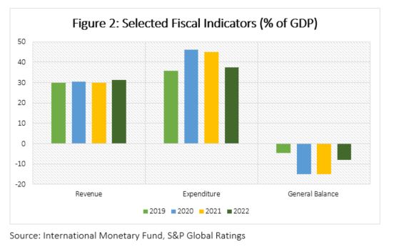 The introduction of the sizable stimulus package in 2020 led to a sharp uptick in government debt from 79.2% of GDP in 2019 to 100.1% in 2020 which was necessary to finance the 14.9% of GDP fiscal deficit in 2020. Throughout the medium-term, net government debt will stay elevated at over 100% of GDP peaking at 107.3% of GDP in 2026 according to the International Monetary Fund (IMF).
